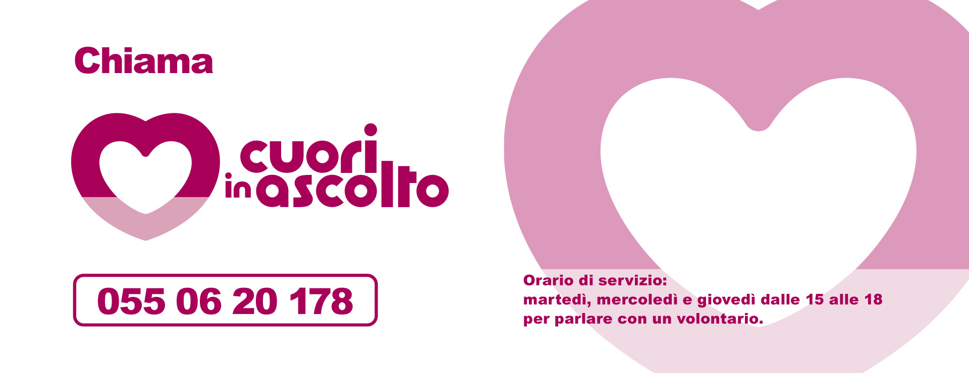 Cuori in Ascolto è lo sportello di ascolto per le cardiomiopatie svolto dai nostri volontari esperti e formati che, attraverso l’ascolto, il confronto e la condivisione di esperienze ti forniranno un supporto personalizzato per affrontare al meglio la tua esperienza di Cardiomiopatia o quella di un tuo familiare.