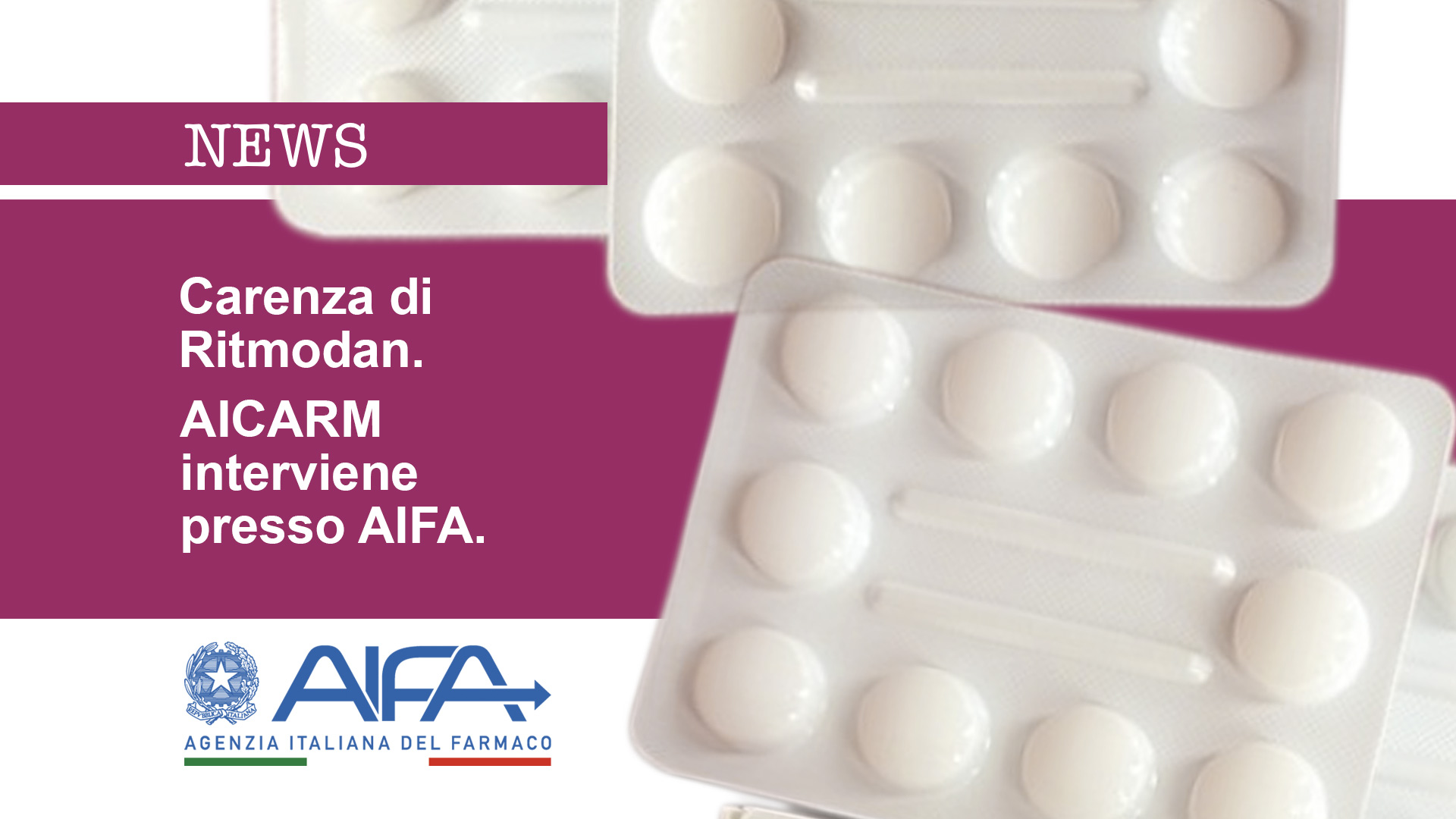 AICARM desidera informarvi che l’AIFA (Agenzia Italiana del Farmaco) ha oggi pubblicato un comunicato ufficiale riguardante la carenza dei medicinali a base di Disopiramide: RITMODAN 100 mg capsule rigide e RITMODAN RETARD 250 mg compresse a rilascio prolungato.