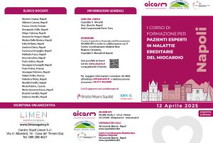 Siamo lieti di annunciare il I Corso per Pazienti Esperti in Malattie Ereditarie del Miocardio, che si terrà sabato 12 aprile 2025 a Napoli dalle ore 8.30, presso l’Ospedale Vincenzo Monaldi – Aula Congressuale Piano Terra.