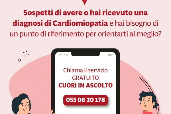 Per aiutare le persone con una diagnosi di cardiomiopatia, AICARM ha attivato uno sportello di ascolto gestito da volontari ed esperti: Cuori in Ascolto. AICARM ha formato un gruppo di