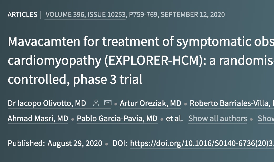 Si tratta di un trial condotto su oltre 60 centri in USA e in Europa, su 251 pazienti con Cardiomiopatia Ipertrofica Ostruttiva, randomizzati a ricevere Mavacamten o placebo. Nel corso di 30 settimane di trattamento, il Mavacamten si è in grado di migliorare in modo marcato l’ostruzione al flusso di sangue, i sintomi, la capacità funzionale e la qualità della vita in circa i 2/3 dei pazienti.