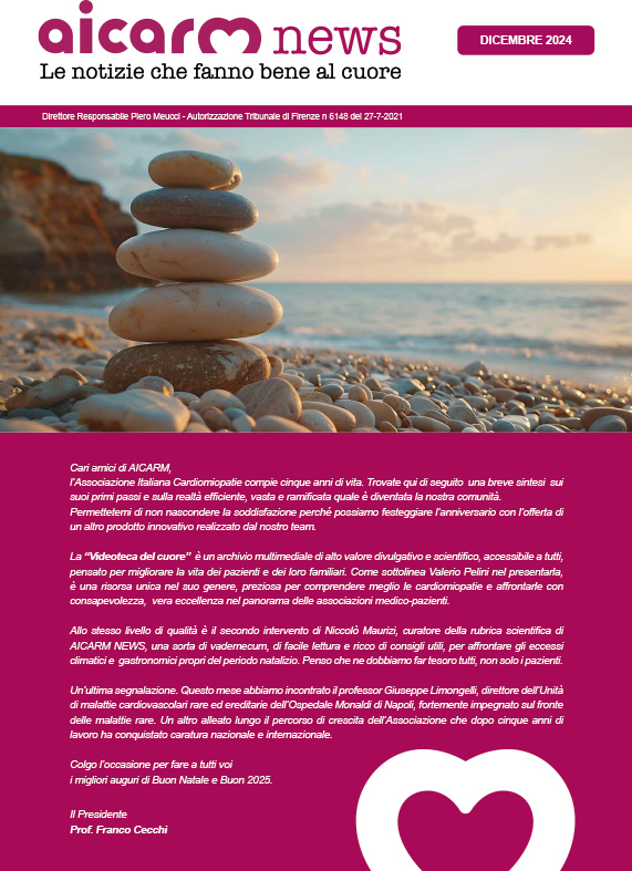 La newsletter AICARM NEWS, con oltre 900 iscritti, rappresenta un ponte tra il sapere degli esperti e le esperienze dei pazienti. Nel 2024 sono stati pubblicati 11 numeri della newsletter, arricchiti anche da quattro schede tematiche di approfondimento su argomenti chiave per la gestione delle cardiomiopatie.